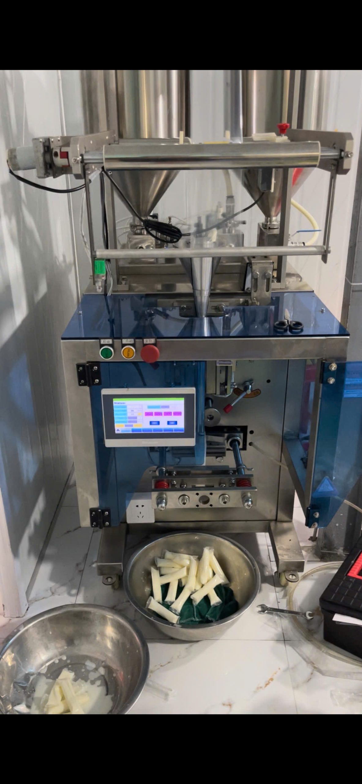 - Máy đóng gói sữa chua vận hành rất đơn giản, công việc của bạn cần làm chỉ là cho dung dịch sữa chua vào khay nguyên liệu và nhận lấy thành phẩm đưa vào kho đông lạnh.